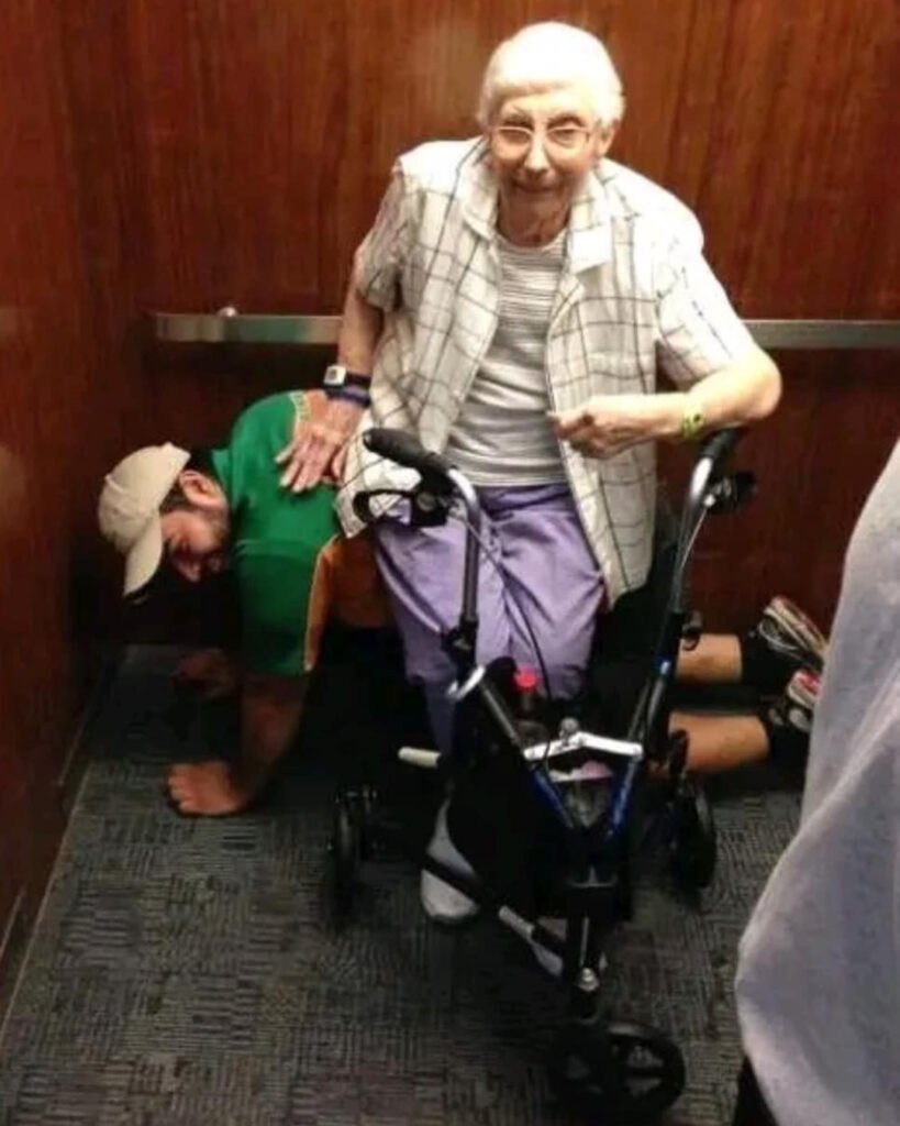 Among the passengers was an elderly woman, frail but cheerful, with her walker beside her. She mentioned to those around her that she couldn’t stand for long periods of time. At her age, even a few minutes upright without proper support was exhausting. The elevator had stopped, and time dragged on. What was first a small delay quickly became a long wait, and discomfort began to weigh on her.
