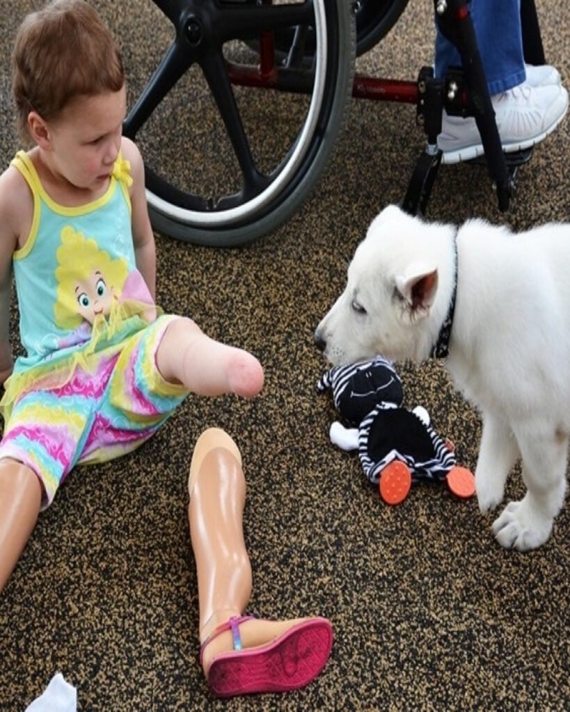 Sapphyre’s father, Matthew Johnson, shared that children with disabilities often struggle to find others who understand their experiences. But for Sapphyre, meeting Lieutenant Dan felt like destiny. “A lot of kids don’t see other children or animals that have issues like they have,” he told The Greenville News. When Sapphyre first saw a picture of Lieutenant Dan, she immediately identified with him. According to Shriners’ specialist Elaine Hardin, Sapphyre’s reaction was pure and heartfelt. “The first time I showed her a picture of the dog, she looked at it for a moment, and she said, ‘That’s my puppy. He’s just like me,’” Hardin recalled.