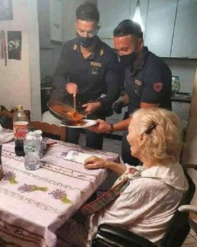 While they waited for an ambulance to arrive and check on the couple’s health, the officers made a choice that transformed the moment into something unforgettable. Instead of standing idly by, two of them moved to the small kitchen. They rummaged through what little the couple had and prepared a meal as simple as it was meaningful: spaghetti with butter and parmesan.