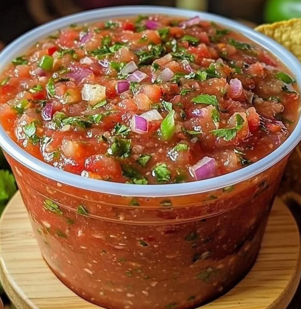 Your amazing homemade salsa is ready to enjoy! Serve it with chips or as a zesty topping for your favorite dishes!