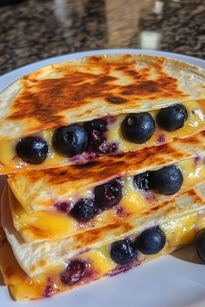 If using frozen blueberries, thaw and blot dry to avoid a soggy tortilla.