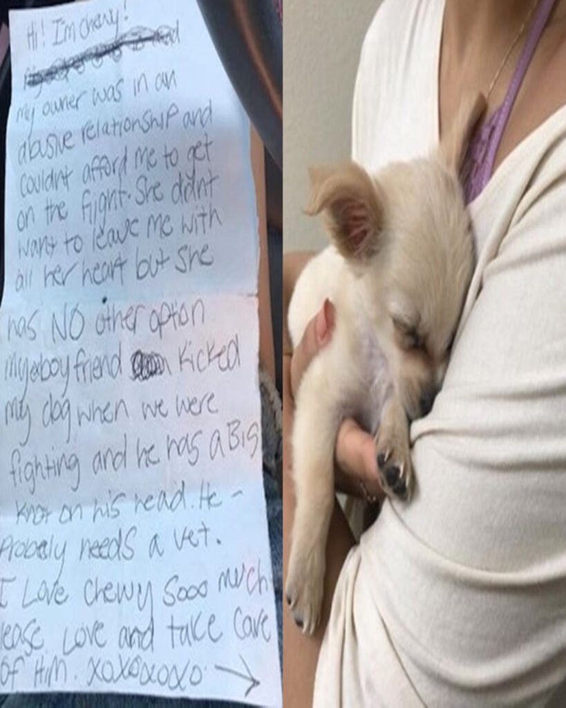 Chewy’s owner, a young woman fleeing an abusive relationship, had reached an impossible crossroads. She loved her puppy, but she couldn’t afford to bring him on her flight. Worse still, she feared for his safety if she left him behind with her violent partner. In a heartbreaking decision, she placed him gently in the airport bathroom, alongside a message that revealed her anguish.