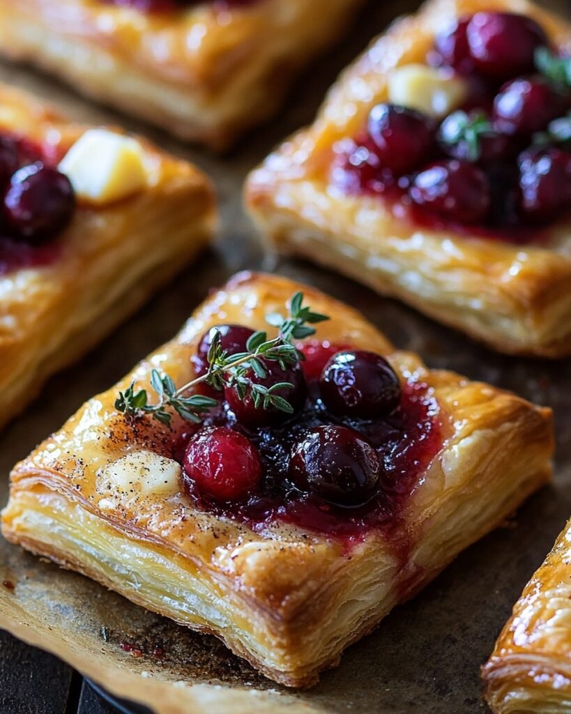 Cranberry Brie Puff Pastry Bites: Flaky, buttery pastry filled with creamy brie and tart cranberries, perfect for festive appetizers or holiday parties!