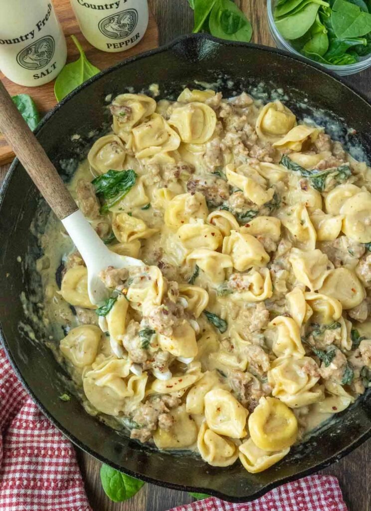 Creamy, savory, and packed with flavor, this Tortellini and Sausage Skillet is a super easy one-pan meal. With tender cheesy pasta and bold Italian sausage, this is a simple dinner the whole family will love!