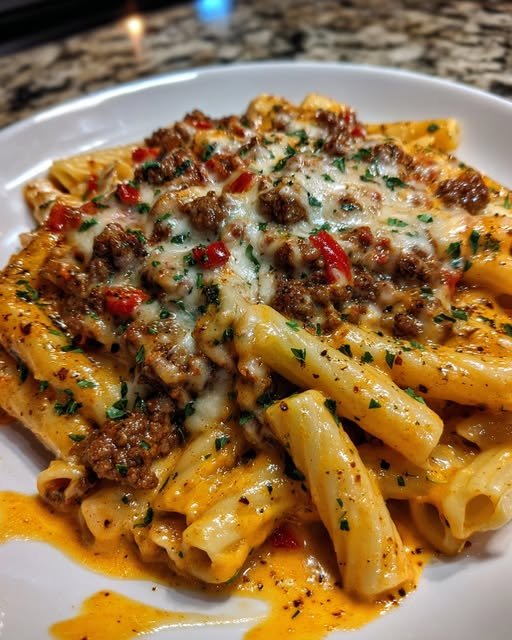 Step 5: Return the cooked beef and drained penne to the skillet. Toss everything together until the pasta is well coated and the beef is evenly distributed. If the sauce feels too thick, add a splash of the reserved pasta water until it reaches the consistency you like.