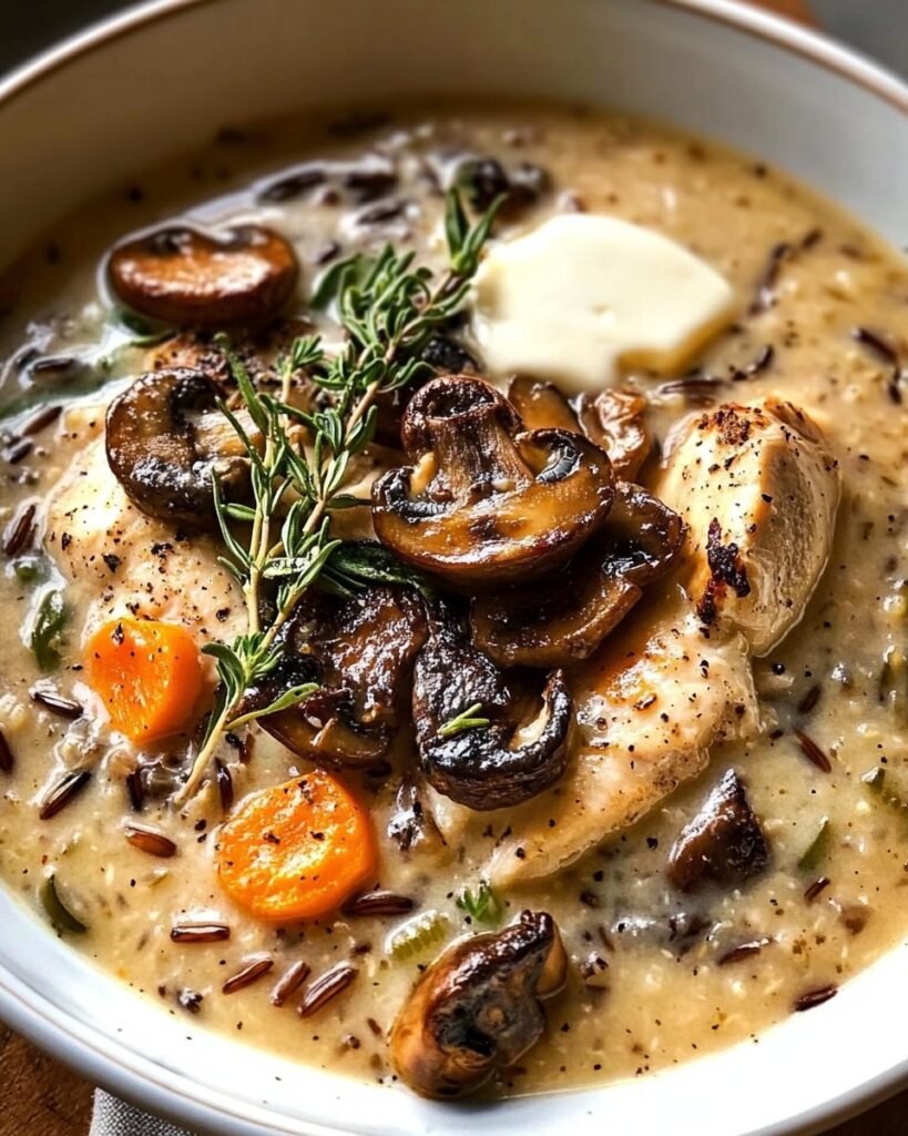 Creamy Wild Rice Chicken Soup with Roasted Mushrooms – A Heartwarming Comfort Food Recipe
