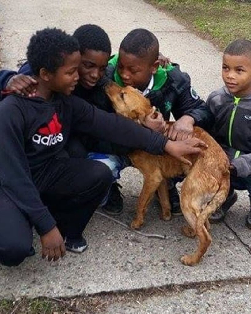 The next twist of fate came when they walked Sparkle around the neighborhood. There, they met members of the Detroit Pit Crew Dog Rescue. The boys told Sparkle’s story, and the rescuers immediately took action. It was suspected she had mange, but even more than her medical needs, the boys’ devotion shone through. “You could tell they really love this dog,” said Theresa Sumpter, the organization’s founder. “They were protective and wanted to make sure she was going to a good place.”