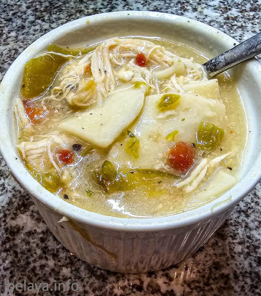 Green Chile, Chicken & Flour Tortilla Dumpling Soup