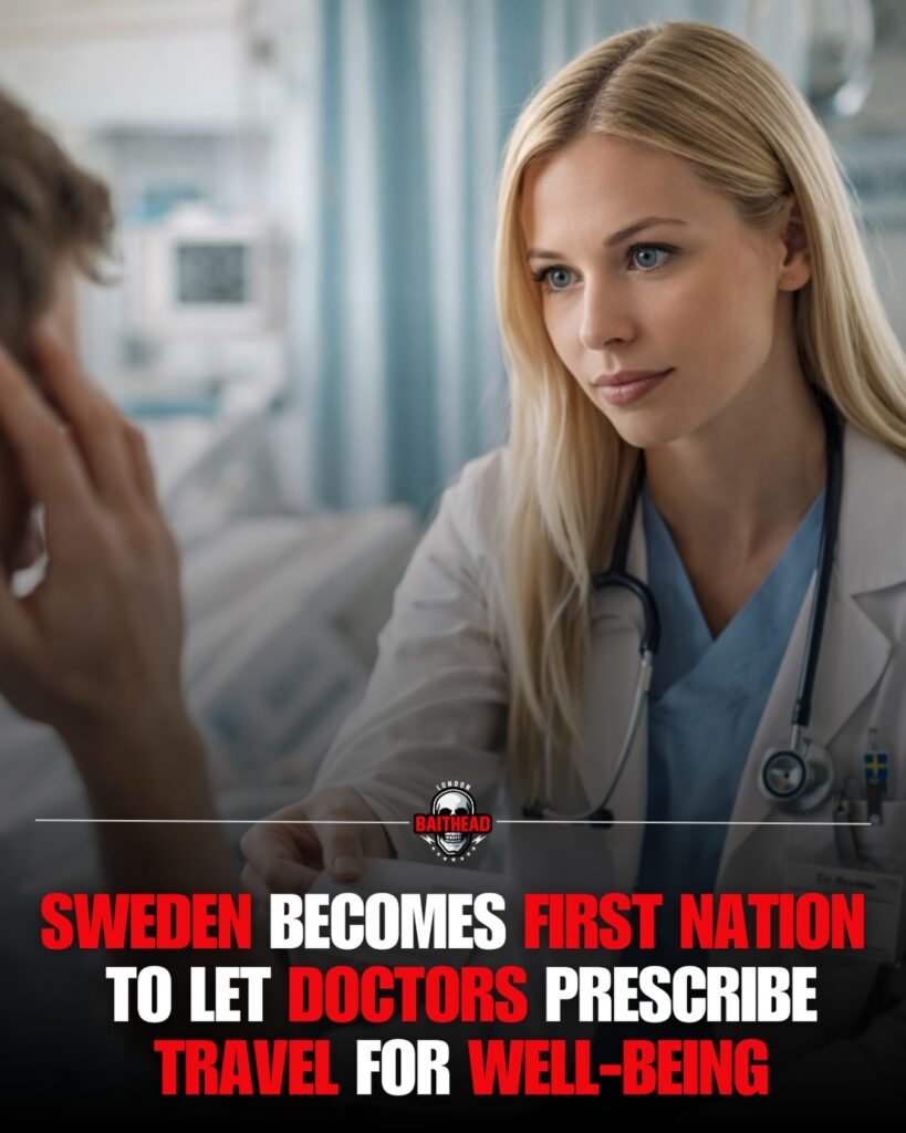 The image portrays a calm, compassionate moment between a doctor and a patient—an interaction that reflects trust, empathy, and care. Paired with the message that Sweden has become the first nation to allow doctors to prescribe travel for well-being, the image symbolizes a groundbreaking shift in how health is understood and treated in modern society.