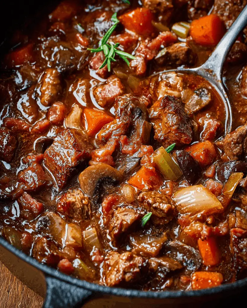 Hearty Beef & Mushroom Stew is more than just food—it’s a celebration of comfort, flavor, and tradition. With tender beef, savory pancetta, earthy mushrooms, and fragrant herbs, every bite feels like home. Whether you’re serving it at a family dinner, prepping meals for the week, or entertaining guests, this recipe delivers every time.