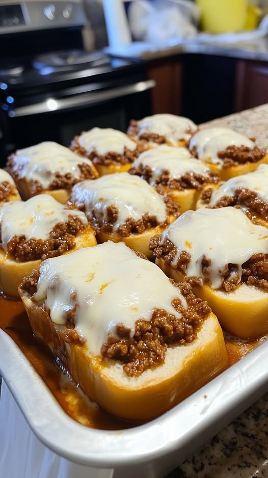 - Spoon an equal amount of the thickened, savory meat mixture onto each slice of bread. Place a second slice of American cheese directly on top of the filling.