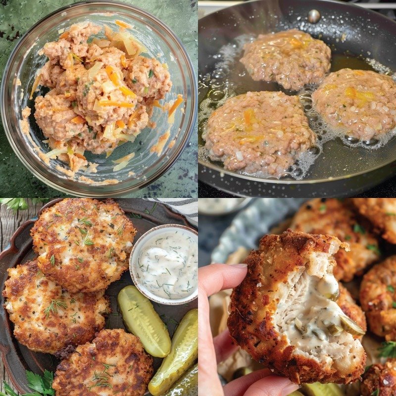 - To the heated skillet, add the chicken. To create a patty shape, slightly flatten. Add more chicken mixture and repeat. To create a patty shape, slightly flatten. Add more chicken mixture and repeat.