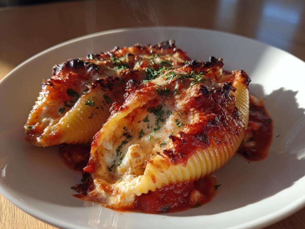 A classic Italian dish featuring pasta shells stuffed with a rich cheese mixture and baked in marinara sauce.