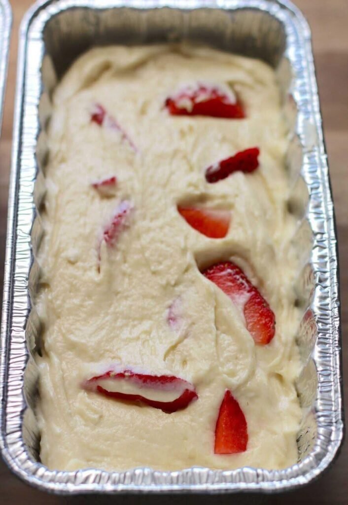 5. Adding Strawberries: Gently fold the sliced strawberry pieces into the batter, distributing them evenly.