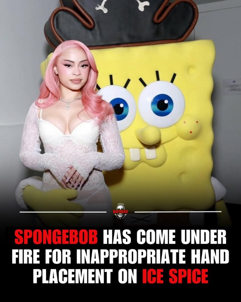 The image captures a moment where pop culture, celebrity, and public sensitivity collide. Standing beside rapper Ice Spice is a person in a SpongeBob SquarePants costume, a character globally recognized as a symbol of childhood innocence and humor. What has drawn attention, however, is the placement of the character’s hand, which many online viewers have criticized as inappropriate, igniting a wave of debate across social media platforms.