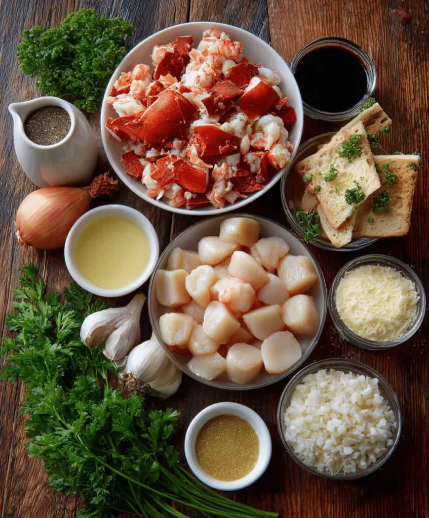 Step 1: Prepare the Seafood Begin by ensuring all your seafood is properly prepared. If using fresh scallops, pat them completely dry with paper towels to ensure proper searing. Cut the cooked lobster meat into bite-sized pieces, and verify that the shrimp are fully cleaned and deveined.