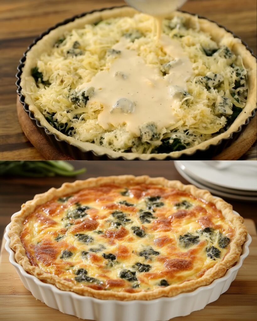 This Delicious Spinach and Cheese Quiche brings together fresh spinach, creamy mozzarella, savory Parmesan cheese, and a homemade buttery crust, creating the ultimate comforting meal. Perfect for breakfast, brunch, or dinner, this versatile dish is equally suitable for casual family meals or entertaining guests. With its beautiful golden crust, delicate flavors, and rich, cheesy filling, this quiche is guaranteed to become a regular favorite in your household. Whether enjoyed warm or at room temperature, every bite is filled with wholesome, nutritious goodness, making it an excellent choice for any meal.