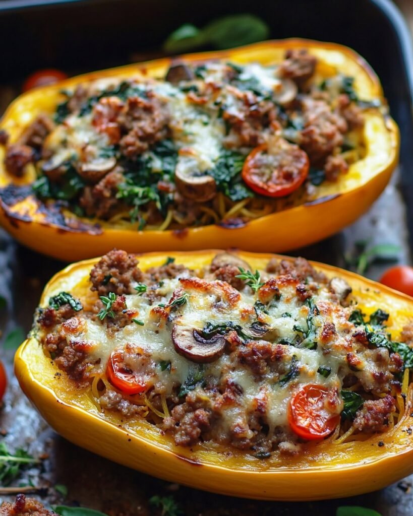 Stuffed Spaghetti Squash with Italian Sausage and Vegetables: A Flavor-Packed, Healthy Meal!”