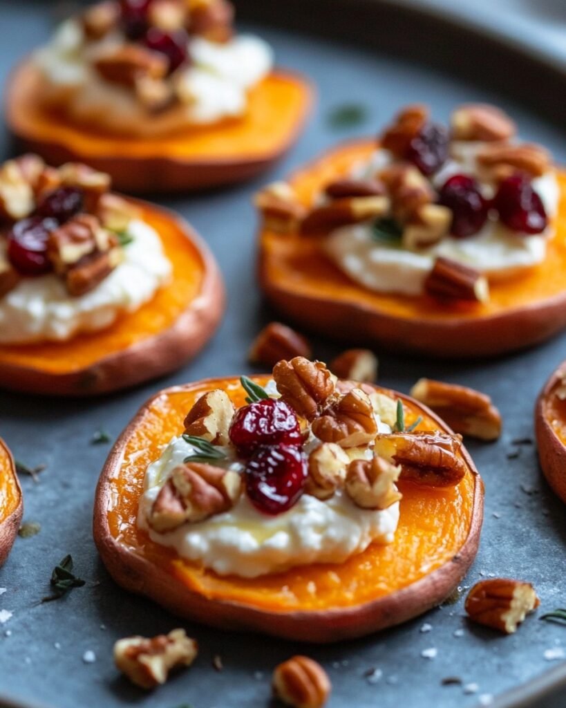 If you’re searching for a recipe that’s as delicious as it is eye-catching, then look no further than Sweet Potato Rounds Bliss. This simple yet elegant dish combines the natural sweetness of roasted sweet potatoes with creamy goat cheese, crunchy candied nuts, and tangy dried cranberries. Drizzled with honey and a balsamic glaze, each bite offers an explosion of textures and flavors. Plus, the garnish of basil leaves adds a refreshing finish. This dish is perfect as an appetizer or a delightful side dish for your next gathering. Let’s dive into making this blissful dish!