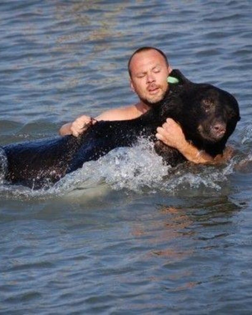 Brave Man Risks His Life To Save A 400Lb Drowning Bear - Sonyaz