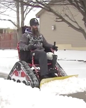 But Anderson’s tool of choice isn’t a shovel, nor is it a snow blower. It’s his wheelchair.