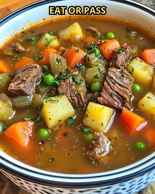 Vegetable Beef Soup is a hearty and comforting dish, featuring tender chunks of beef, a medley of fresh vegetables, and a flavorful broth. It’s perfect for a warming meal on a cold day or as a nourishing option for feeding a crowd.