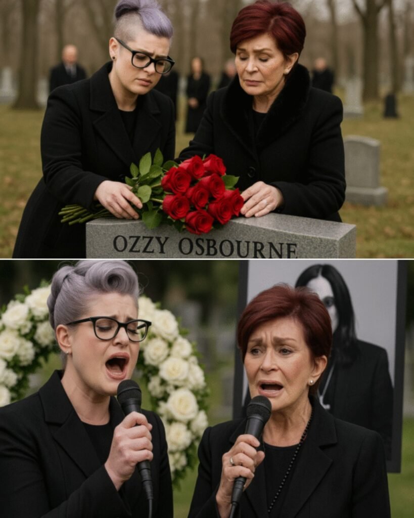 The chapel was already heavy with grief, but when Sharon Osbourne took her daughter Kelly’s hand and led her to the front of the room, a hush unlike any before fell across the mourners. Under a soft white spotlight, the two women stood side by side — mother and daughter, widow and child — their faces etched with sorrow, their steps weighted with love and loss.
